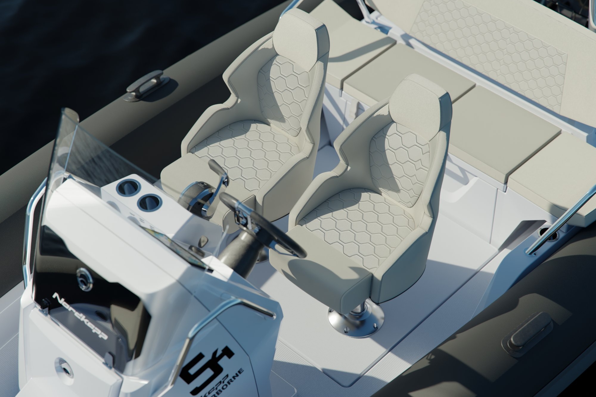 Airborne 5.4 on suunniteltu intuitiivista ja kuljettajaystävällistä ajettavuutta varten. Luonteeltaan ketterä, se reagoi ennakoitavasti ja pitää kaiken yksinkertaisena olitpa uusi veneilijä tai haluat vain veneen, joka ei ole tielläsi. Epäsymmetriset ponttonit vähentävät huollon ja puhdistuksen tarvetta, joten enemmän aikaa jää sinne, minne se kuuluu: vesille.