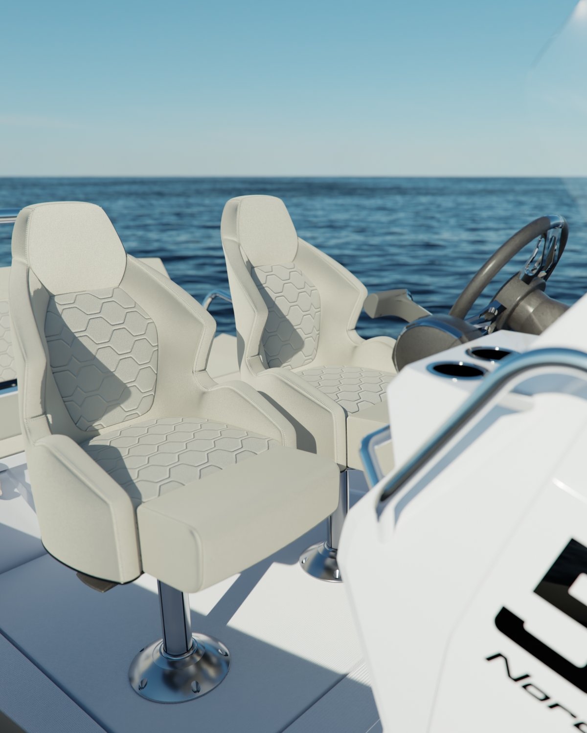Airborne 5.4 on kompakti RIB, joka ei ota oikopolkuja. Ainutlaatuisella keulakonstruktiolla olemme pidentäneet vesirajan, jotta vene käyttäytyy kuin suurempi malli. Voit mukauttaa sekä keula- että peräkannen täysin haluamallasi tavalla. Valitse kahden eri istumaratkaisu-vaihtoehdon välillä konsolilla ja laajasta värivaihtoehdoista antaaksesi veneellesi henkilökohtaisen leimasi. Lyhyesti sanottuna: Saat täyden Nordkapp-kokemuksen pienessä ja jännittävässä paketissa.